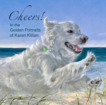 Her subjects frequently include Goldens and other furry friends! This limited edition print, "Shaken, Not Stirred," captures Killian's unique style, playfulness, and the warmth of the Golden Retriever